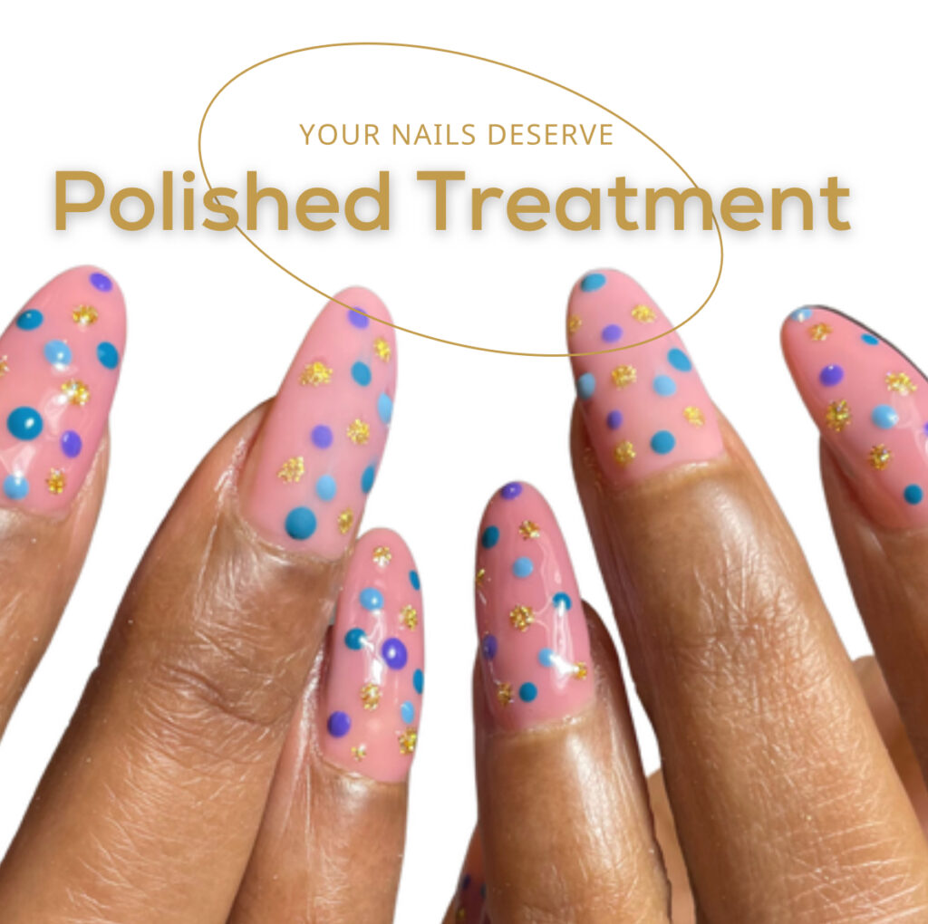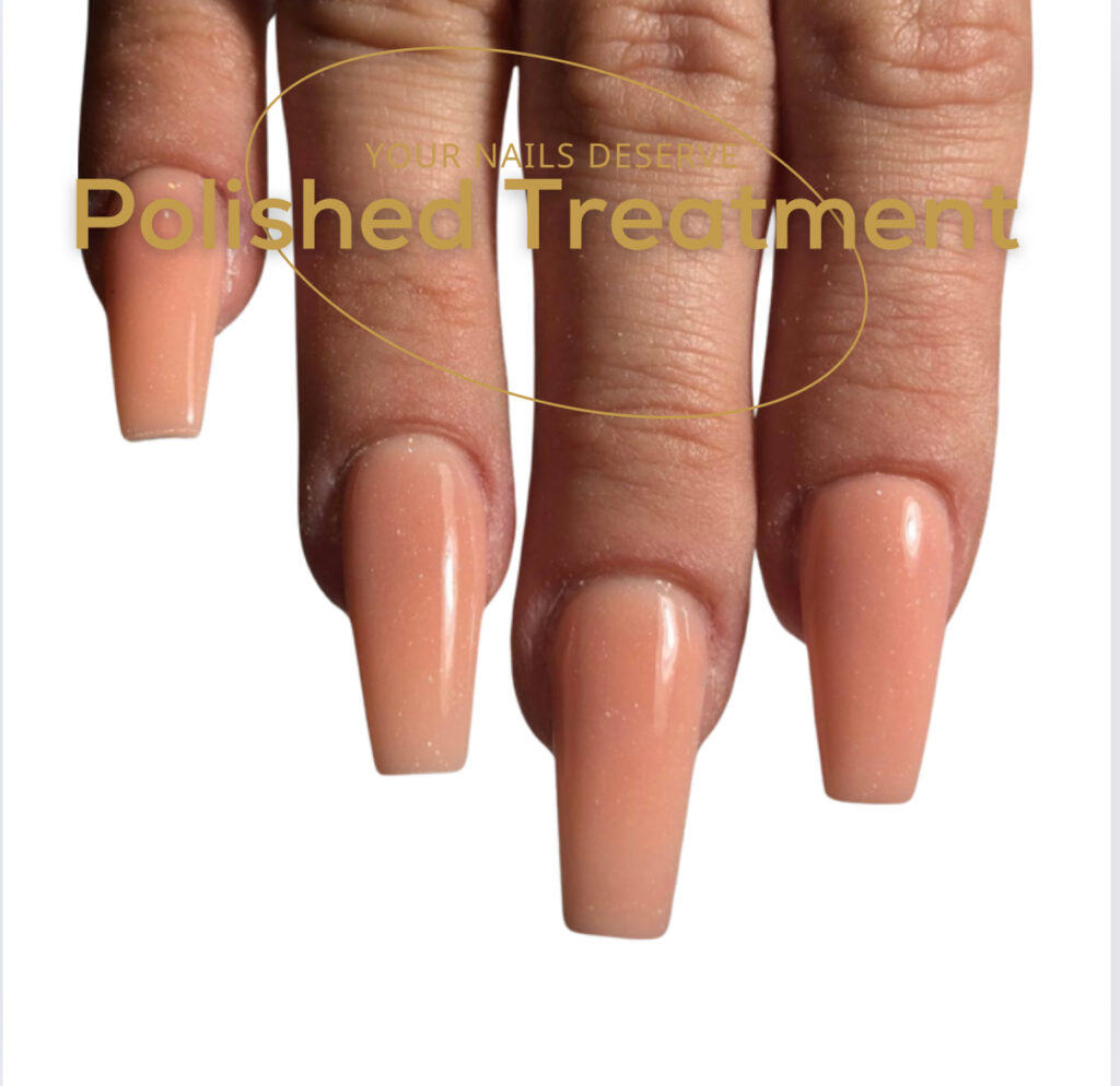A service that include pinks or nudes color acrylic coverage over natural nail bed with choice of regular or gel nail polish color.